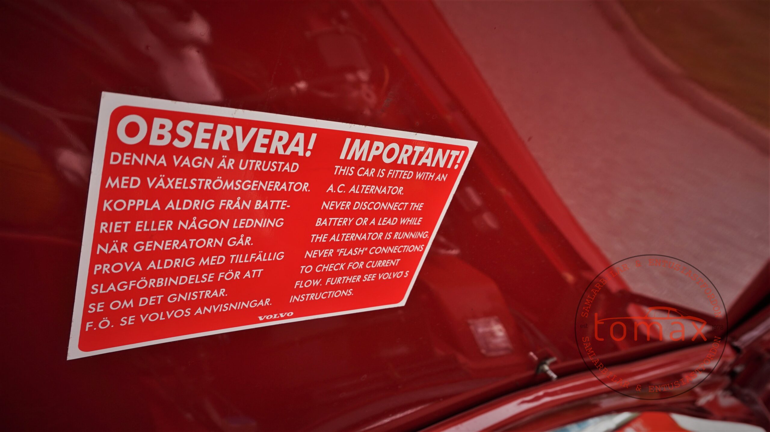 In 2008, the car was found alone and abandoned and was purchased by one of Sweden's most renowned Volvo Amazon enthusiasts and restorers. He carefully and professionally restored the car to its former glory.